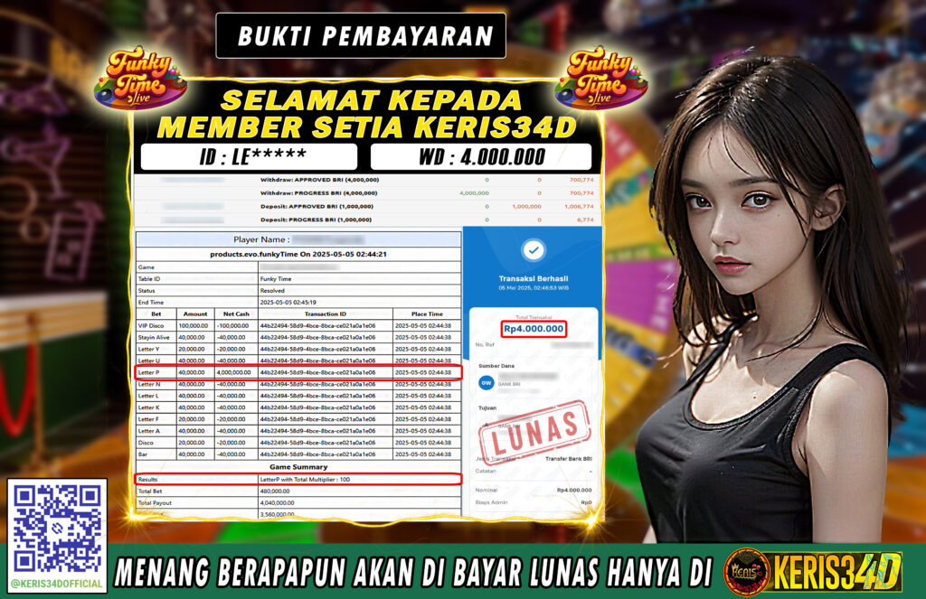 KERIS34D dikenal sebagai situs terpercaya yang selalu menghadirkan pengalaman bermain slot online yang aman, fair, dan berlisensi resmi. Di sini, kami tidak hanya sekadar memberikan janji, tapi bukti nyata berupa slip kemenangan yang dapat Anda lihat secara langsung.