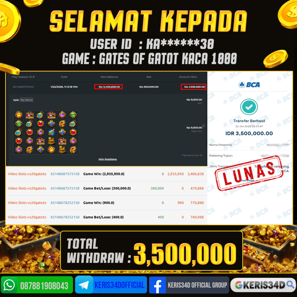 TOTAL KEMENANGAN : Rp. 3.500.000