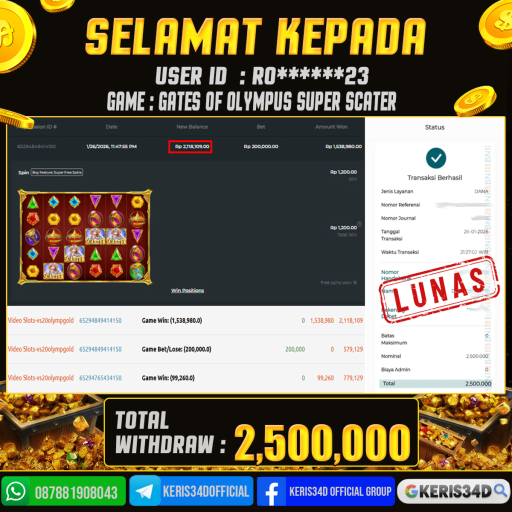 Satu lagi Bukti JP dan Pembarayan Sah Dan Dapat Dipertanggung Jawabkan, WD Berapapun Pasti Dibayar Lunas Hanya di Situs KERIS34D. Hati Hati Kepada Pihak Pihak Yang Mengatas namakan Pihak KERIS34D Untuk Melakukan Penipuan.