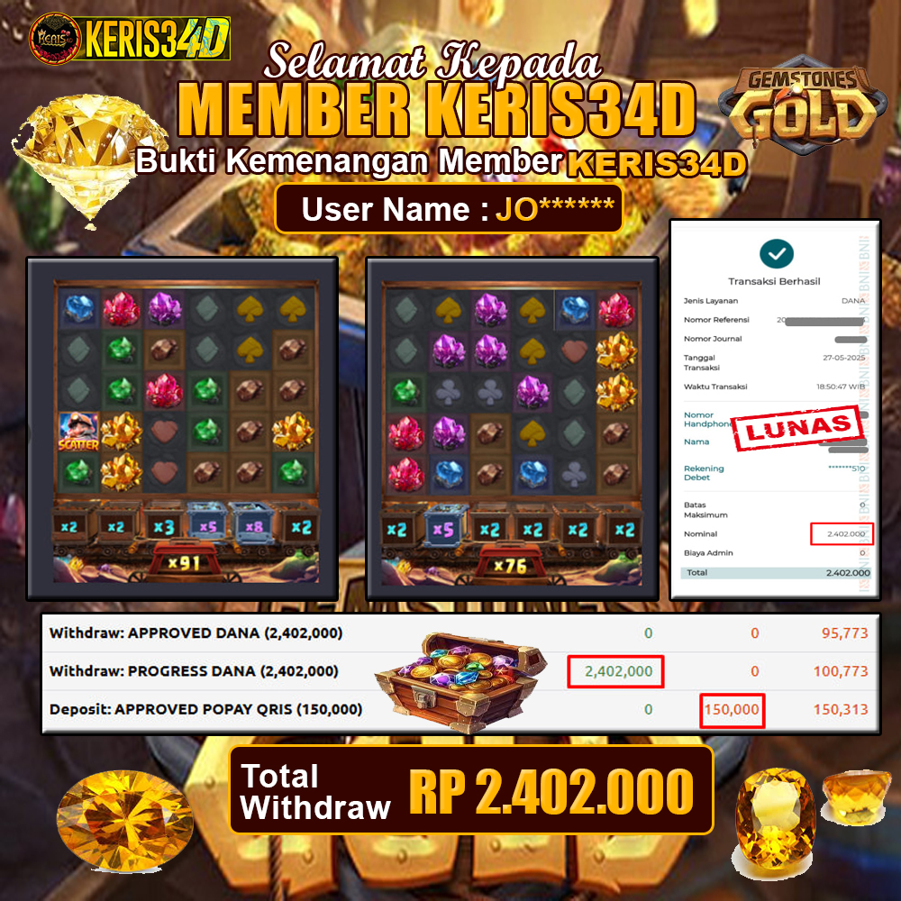 JACKPOT SLOT GACOR MAIN GEMSTONE GOLD 27 MEI 2025