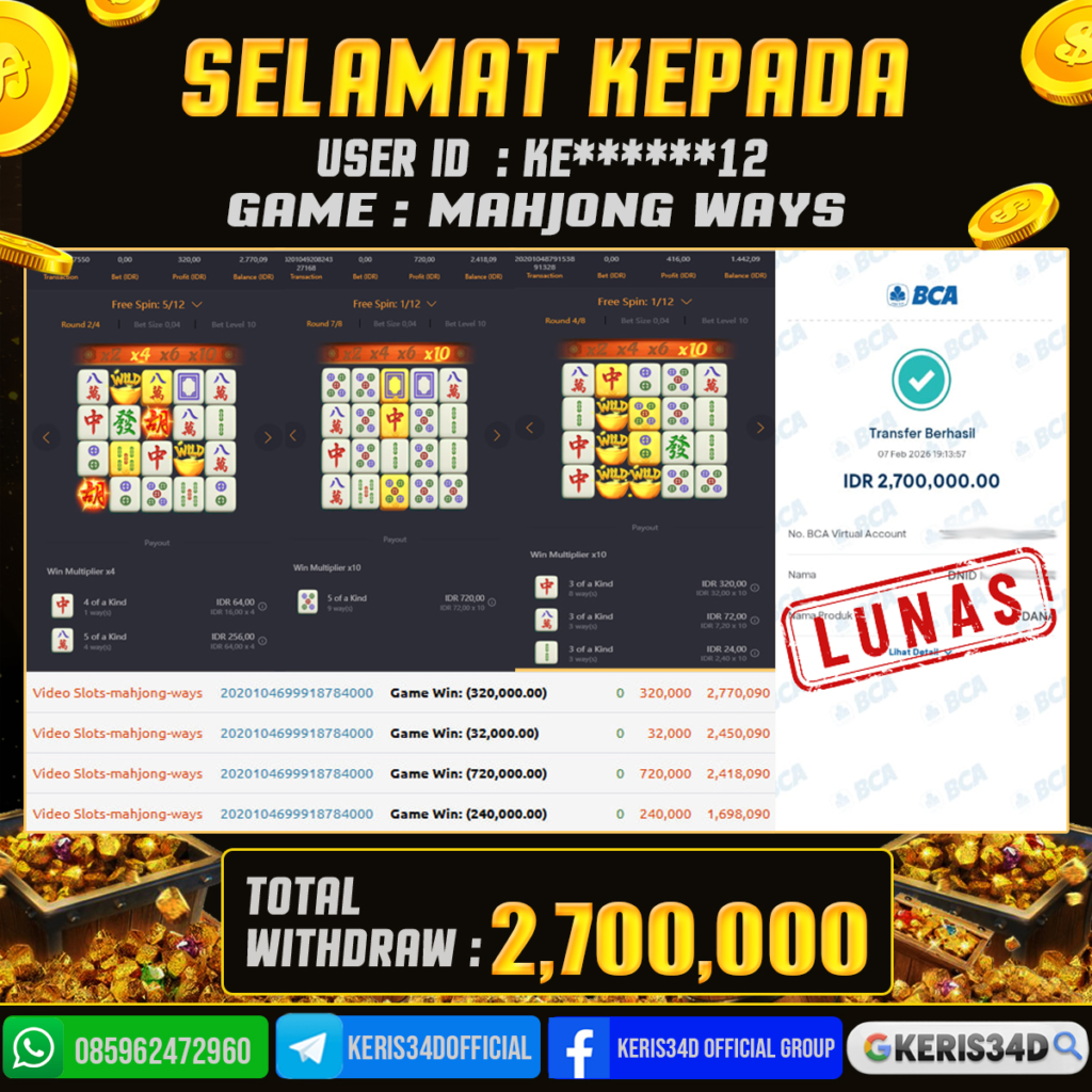 TOTAL KEMENANGAN : Rp. 2.700.000