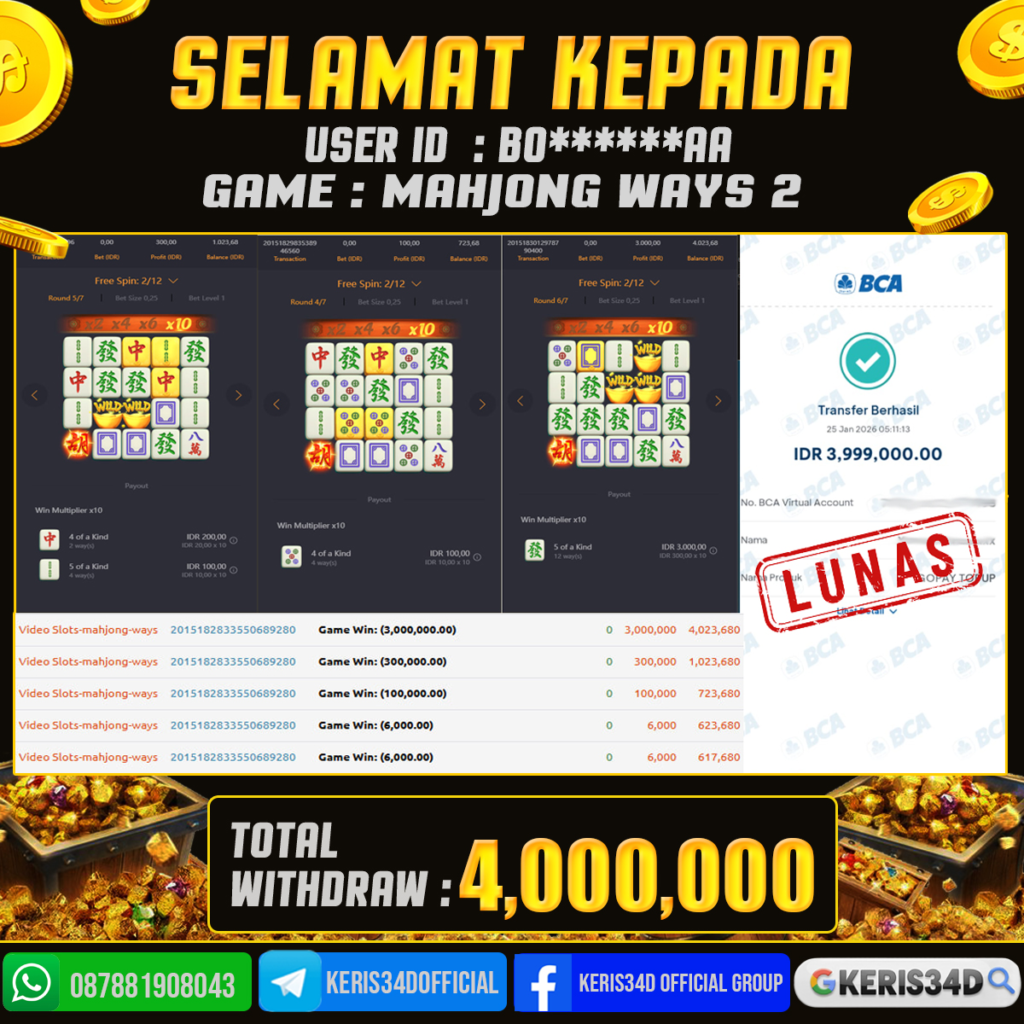 JACKPOT SLOT GACOR MAIN MAHJONG WAYS 2 25 JANUARI 2026