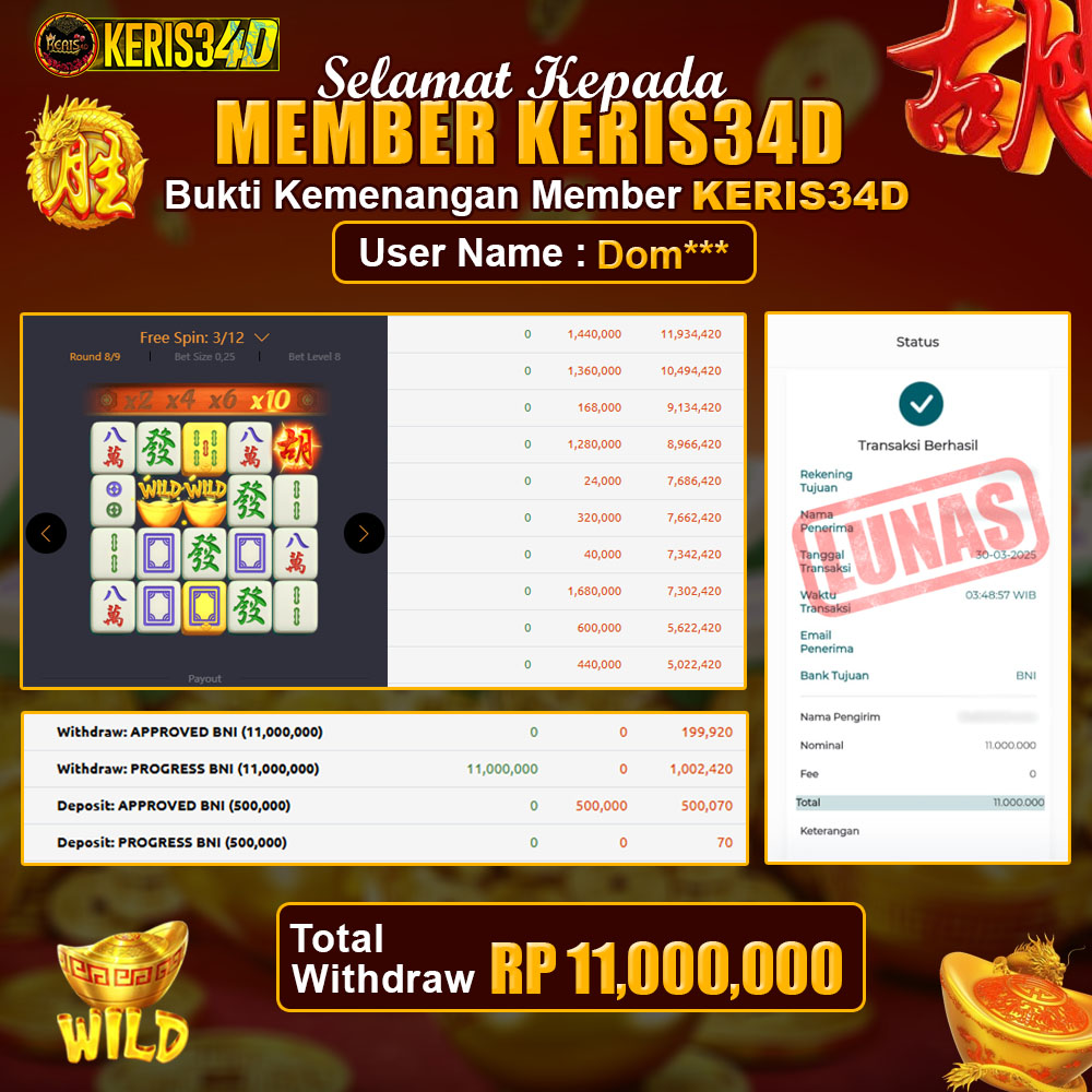 TOTAL KEMENANGAN : Rp. 11.000.000,-