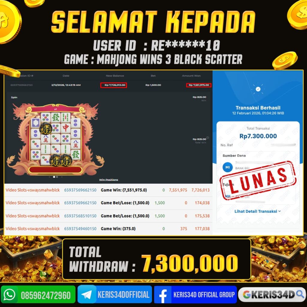 JACKPOT SLOT GACOR MAIN MAHJONG WINS 3 BLACK SCATTER 12 FEBRUARI 2026, Jackpot Slot Gacor, Kemenangan Slot, Bukti Kemenangan Slot, Kemenangan PRAGMATIC, Menang Slot online, Slot Gacor, Situs Aman Terpercaya, WD Berapapun Pasti DI Bayar Tuntas, Maxwin Slot Online.