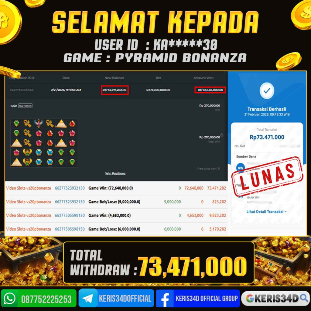 JACKPOT SLOT GACOR PYRAMID BONANZA 21 FEBRUARI 2026, Jackpot Slot Gacor, Kemenangan Slot, Bukti Kemenangan Slot, Kemenangan PRAGMATIC PLAY, Menang Slot online, Slot Gacor, Situs Aman Terpercaya, WD Berapapun Pasti DI Bayar Tuntas, Maxwin Slot Online.