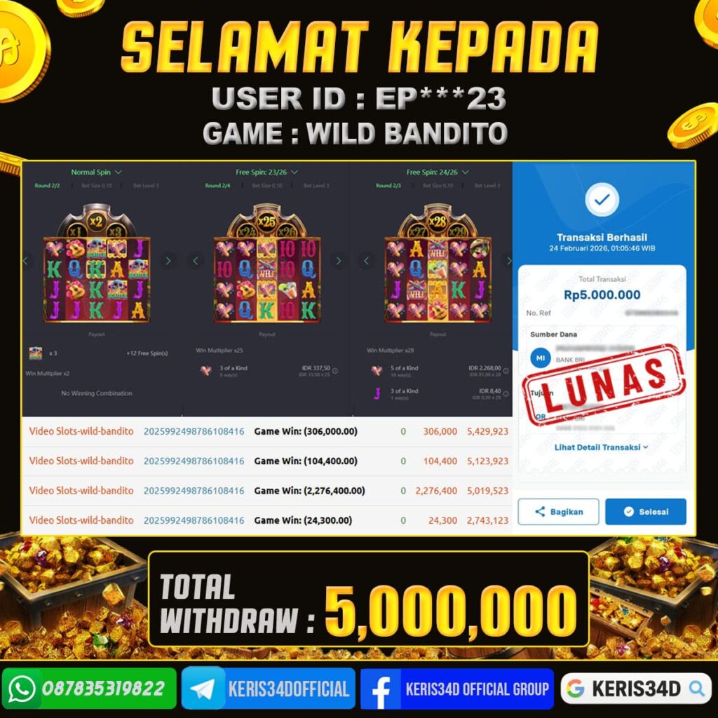 JACKPOT SLOT GACOR MAIN WILD BANDITO 24 FEBRUARI 2026